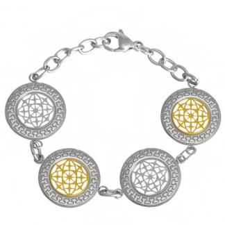 Stainless Steel Bracelet WITH 4 CIRCLES WITH CUT OUT IN IPG TWO TONE