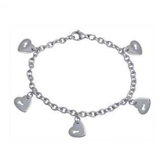 Stainless Steel Bracelet WITH HEART CHARMS (WITH KEY LOCK CUT OUT) ALL IN STEEL COLOR