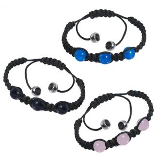 Stainless Steel Bracelet WITH THREE STONES WITH 2 STAINLESS STEEL BEADS AT TWO EXTREMES