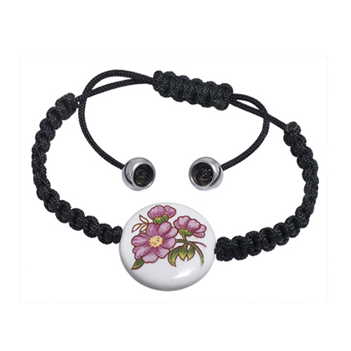 Stainless Steel Bracelet SHAMBALLA BRACELET WITH IMITATION CERAMIC CIRCLE PIECE WITH FLOWER PATTERN WITH STAINLESS STEEL BEADS AT TWO EXTREMES