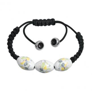 Stainless Steel Bracelet WITH 3 IMITATION CERAMIC OVAL PIECE WITH FLOWER PATTERN WITH STAINLESS STEEL BEADS AT TWO EXTREMES