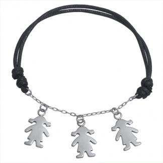 Stainless Steel Bracelet WITH BLACK COTTON CORD (ADJUSTABLE) WITH 3 GIRL CHARMS IN STEEL COLOR