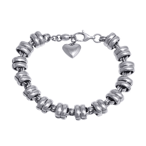 STAINLESS STEEL BRACELET WITH HEART CHARM ALL IN STEEL COLOR