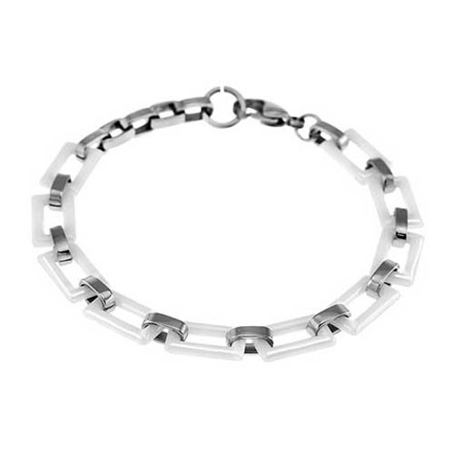 STAINLESS STEEL BRACELET ALL IN STEEL COLOR WITH RECTANGULAR CHAIN IN CERAMIC BLACK OR WHITE COLOR