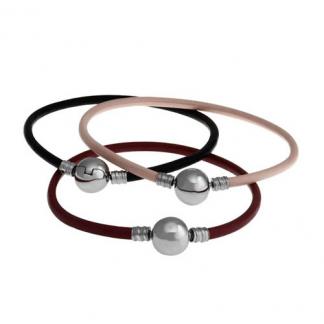 STAINLESS STEEL BRACELET WITH LEATHER STRAND WITH S/S BALL LOCK