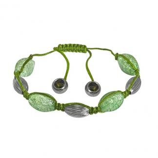 Stainless Steel Bracelet With green crystal in oval shape in outer dia. 8mm With stainless steel