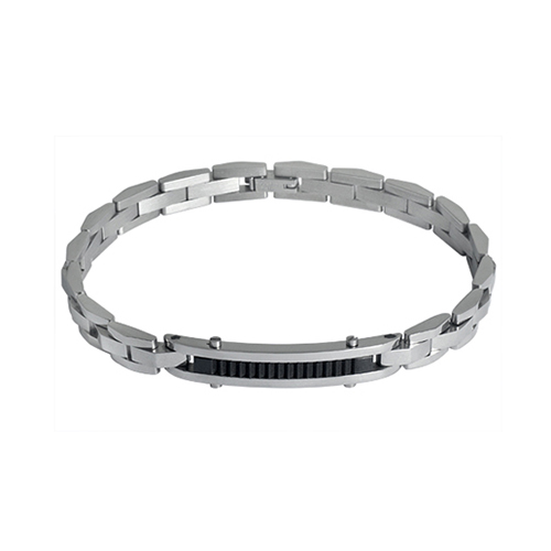 Stainless steel chain and link bracelet in IPB two tone with 10 cz