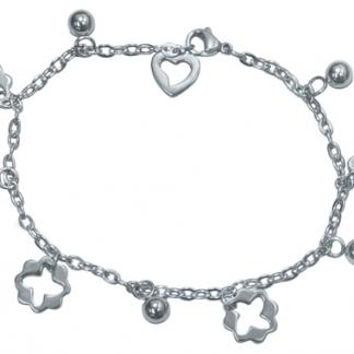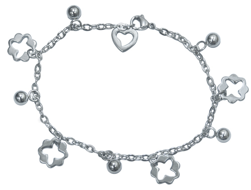 Stainless steel bracelet with flower and beads