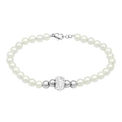 STAINLESS STEEL PEARL BRACELET WITH PEARL COLOR BEADS WITH S/S BEADS WITH STAINLESS STEEL PENDANT WITH CZ