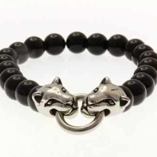 STAINLESS STEEL BLACK STONE BEADS PANTER CENTER BRACELET