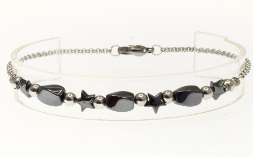 STAINLESS STEEL STEEL AND HEMATITE BEADS BRACELET ALL IN S/S COLOR