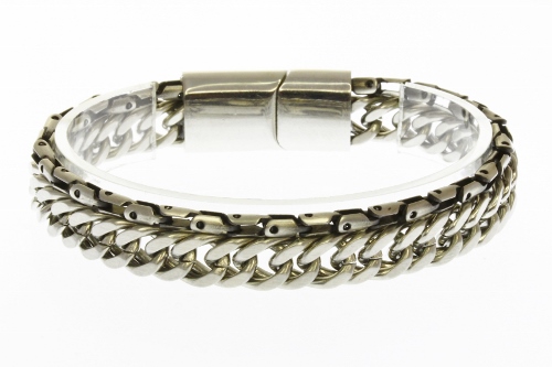 STAINLESS STEEL DOUBLE CHAIN MEN BRACELET BOTTOM CHAIN WITH THE INNER LINKS OXIDIZED