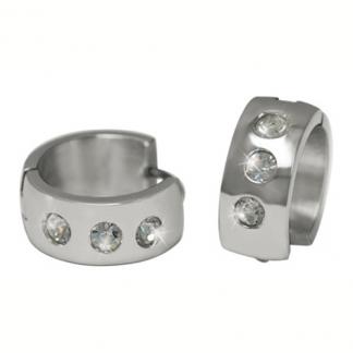 STAINLESS STEEL HUGGIE EARRING IN ROUND SHAPE IN 3 CZ ALL IN S/S COLOR