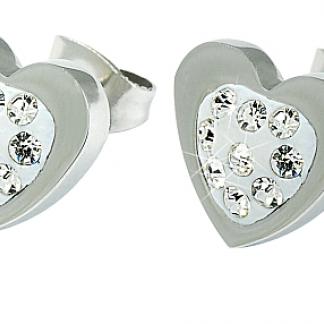 STAINLESS STEEL EARRING IN HEART SHAPE WITH CZ ALL IN S/S COLOR