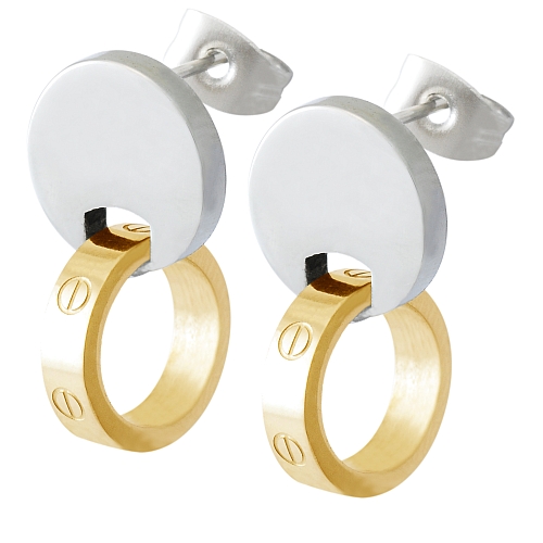 STAINLESS STEEL EARRING WITH RING WITH SCREW PATTERNIN IPG 2 TONES