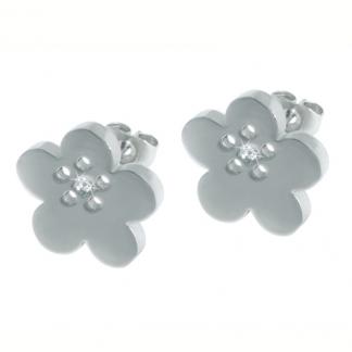 STAINLESS STEEL EARRING WITH FLOWERS WITH ONE CZ ALL IN S/S COLOR