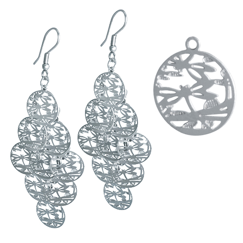STAINLESS STEEL EARRING IN 9PCS CIRCLE SHAPE DROPS WITH DRAGONFLY PATTERN ALL IN S/S COLOR