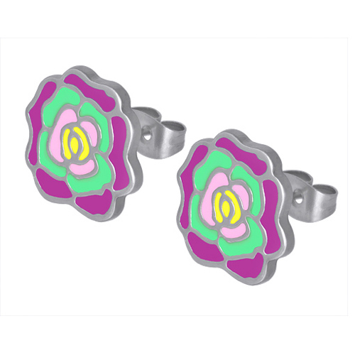 STAINLESS STEEL STUD EARRING WITH ROSE (PINK) (LIKE SE737)