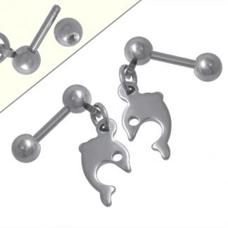 STAINLESS STEEL (EARRING) OPENER FOR KIDS WITH SCREW WITH DOLPHIN ALL IN STEEL COLOR
