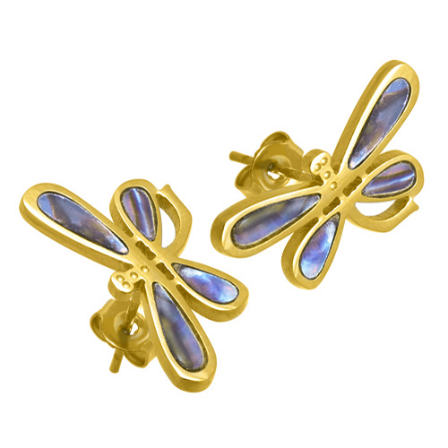 STAINLESS STEEL STUD EARRING IN DRAGONFLY SHAPE WITH COLORFUL SHELL ALL IN IPG COLOR