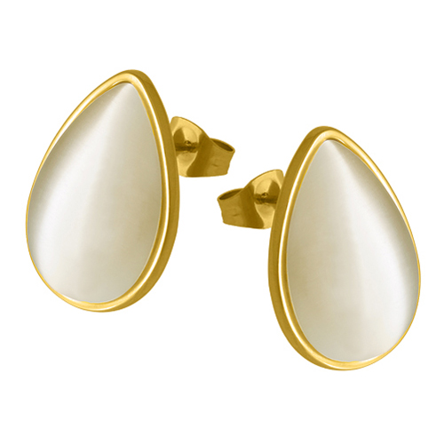 STAINLESS STEEL EARRING IN DROP SHAPE WITH CAT EYE STONE WITH IPG