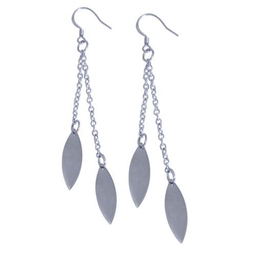 STAINLESS STEEL EARRING WITH 2 OVAL CHARMS ALL IN S/S COLOR