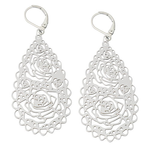 STAINLESS STEEL EARRING IN ROSE SHAPE WITH HOLES ALL IN S/S COLOR