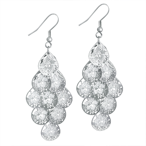 STAINLESS STEEL EARRING WITH 9PCS OVAL SHAPE DROPS IN S/S COLOR