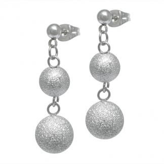 STAINLESS STEEL EARRING WITH SANDBLASTWITH 2 BALLS ALL IN S/S COLOR