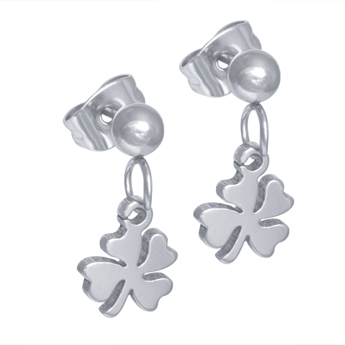 STAINLESS STEEL DROP EARRING IN 4 LEAVES OF CLOVER SHAPE IN S/S COLOR