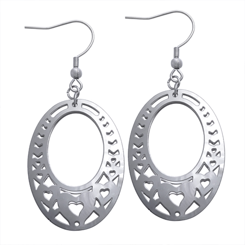 STAINLESS STEEL DANGLE EARRING IN OVAL SHAPE ALL IN S/S COLOR