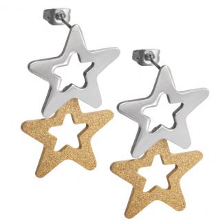 STAINLESS STEEL EARRING WITH 2 STAR IN IPG TWO TONE WITH SANDBLAST