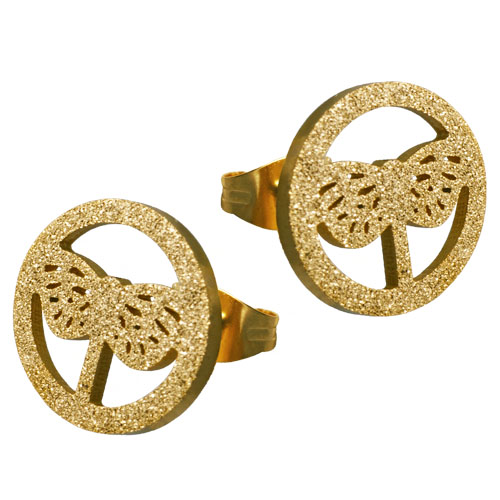 STAINLESS STEEL ROUND STUD EARRING WITH DRAGONFLY WITH SANDBLAST ALL IN IPG