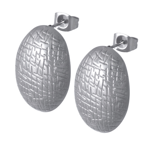 STAINLESS STEEL STUD EARRINGIN OVAL SHAPE WITH PATTERN ALL IN STEEL COLOR