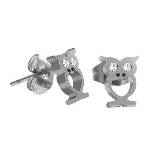 STAINLESS STEEL EARRINGS ALL IN S/S COLOR IN OWL SHAPE WITH CZ
