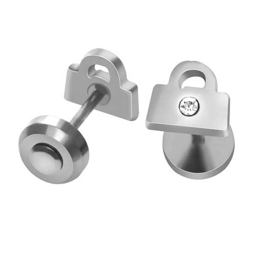 STAINLESS STEEL BABY EARRINGS ALL IN S/S COLOR IN HANDBAG SHAPE WITH CZ