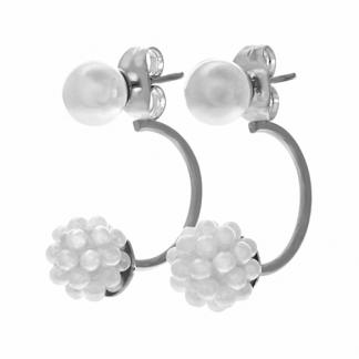 STAINLESS STEEL STUD EARRING C SHAPE RIGID DROP WITH ONE BIG PEARL AND 1 BALL OF MICRO PEARL AT EACH END ALL IN S/S COLOR