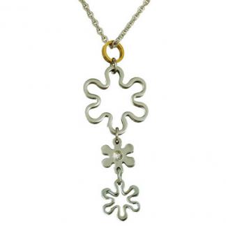 Stainless Steel Necklace 3 flower & 1 cz In IPG two tone