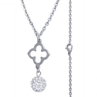 STAINLESS STEEL NECKLACE WITH 1 CZ BALL AND STAINLESS STEEL
