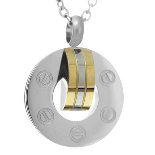 STAINLESS STEEL NECKLACE IN IPG 2 TONES IN CIRCLE SHAPE WITH SCREW PATTERN IN IPG 2 TONES