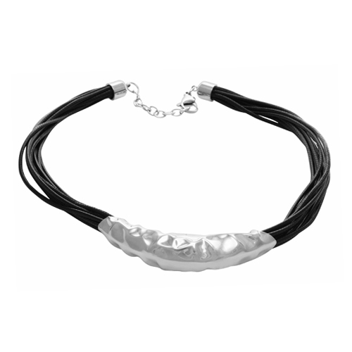 STAINLESS STEEL NECKLACE WITH BLACK PU AND A ROBSTER LOCK IN S / S COLOR