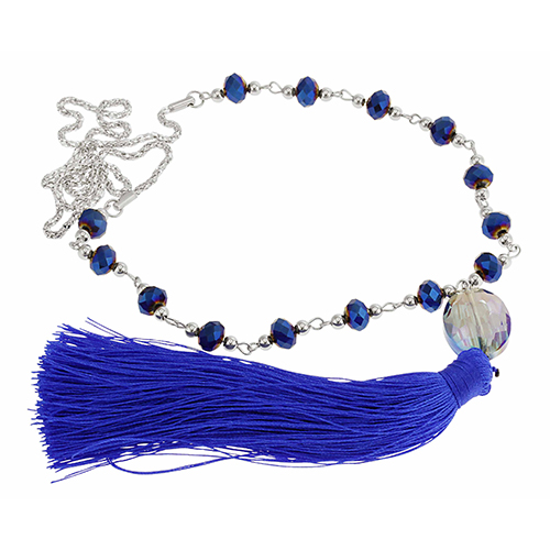 WITH BLUE COTTTON TASSEL/STEEL BEADS