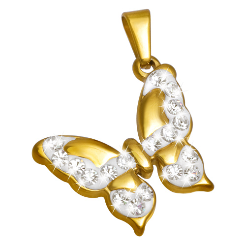 STAINLESS STEEL PENDANT IN BUTTERFLY SHAPE WITH CZ ALL IN IPG