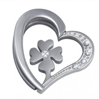 STAINLESS STEEL PENDANT WITH HEART & CLOVER AT CENTRE WITH 4 CZ ALL IN S/S COLOR