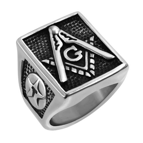 STAINLESS STEEL RING IN S/S COLOR AND BLACK COLOR OF MASONIC CODE