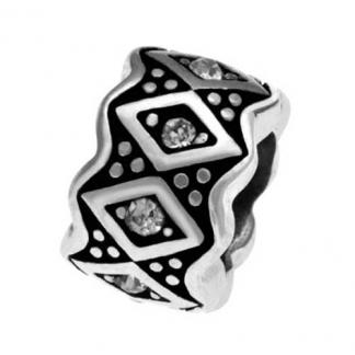 STAINLESS STEEL BEAD IN ROUND SHAPE WITH DIAMOND PATTERN WITH CZ WITH BLACK OIL PAINTING IN STEEL COLOR