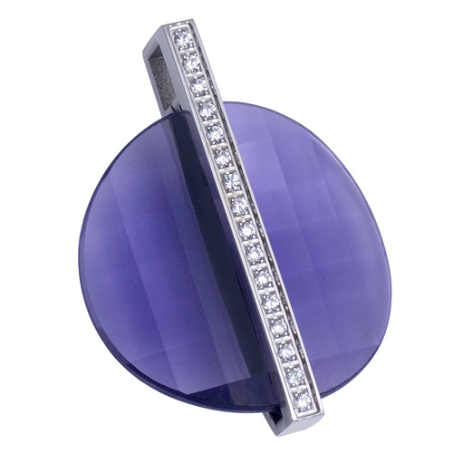 STAINLESS STEEL PENDANT WITH 16 CZ IN CNC SETTING WITH SWAROVSKI CRYSTAL IN PURPLE COLOR