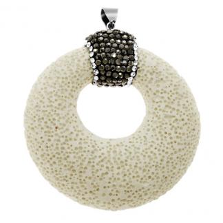STAINLESS STEEL PENDANT IN HALO SEA STONE SHAPE WITH A RING OF BLACK & WHITE CRYSTAL