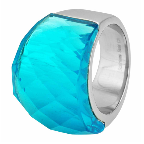 Stainless Steel Fashion Jewellery Ring With Blue Crystal All in Steel Color