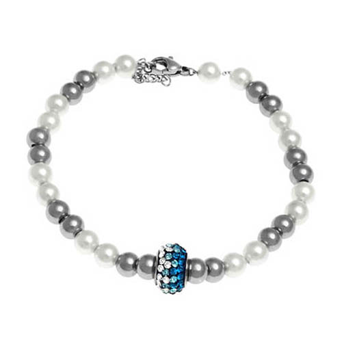 STAINLESS STEEL PEARL BRACELET WITH PEARL COLOR BEADS WITH S/S BEADS WITH STAINLESS STEEL PENDANT WITH CZ